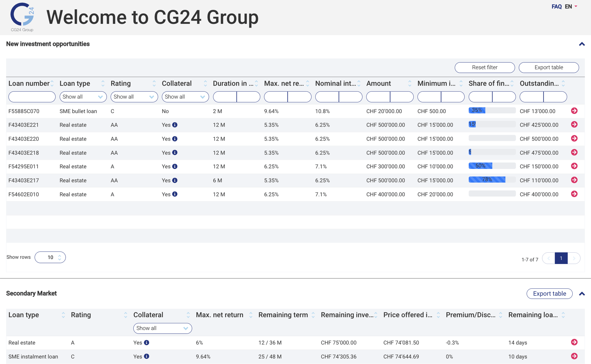 CG24's secondary market allows you to sell your investments before the end date. This gives you the flexibility to obtain immediate liquidity. At the same time, you have the opportunity to acquire attractive projects at a discount on the secondary market.
